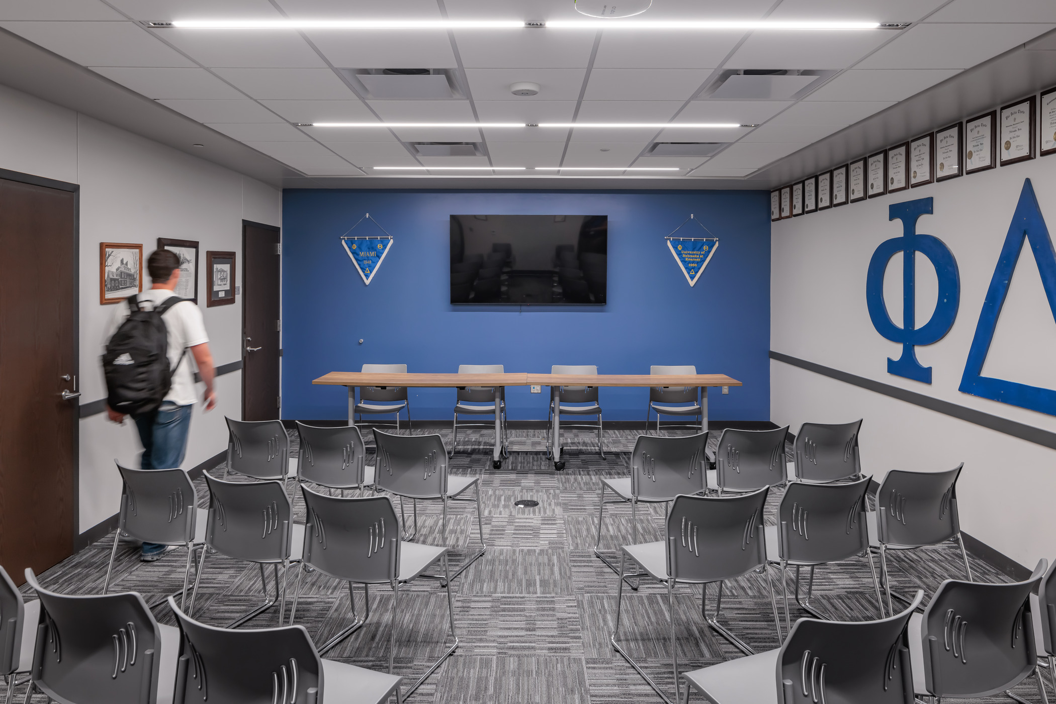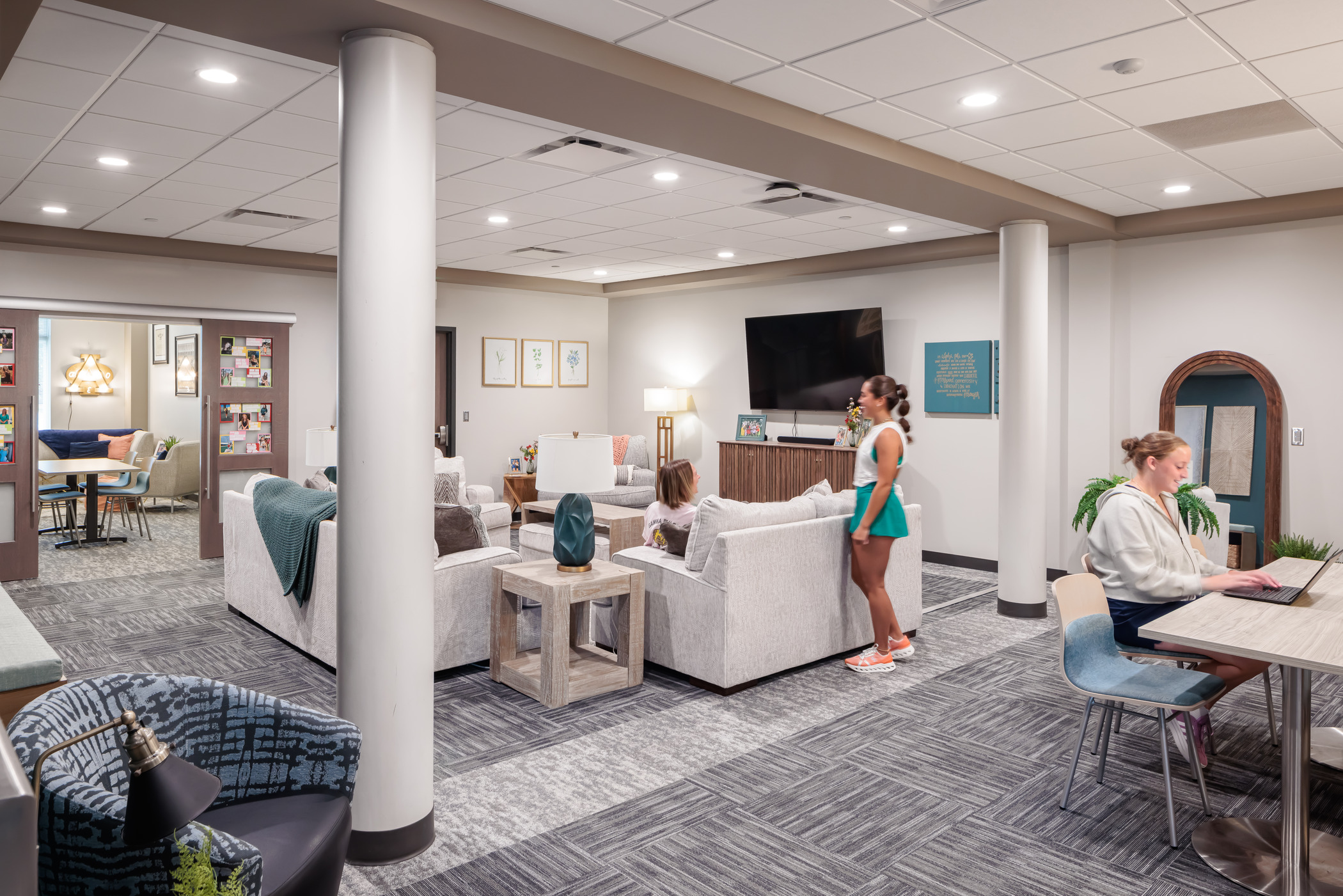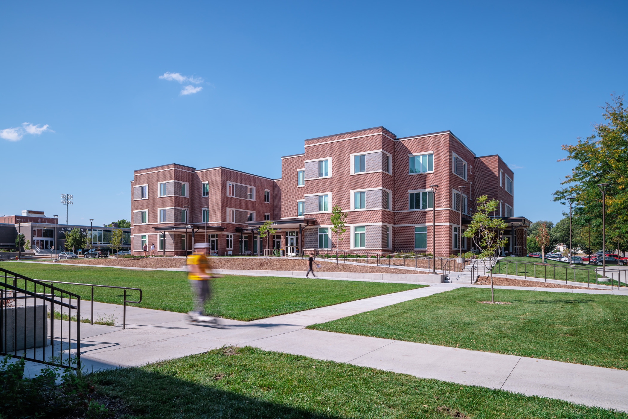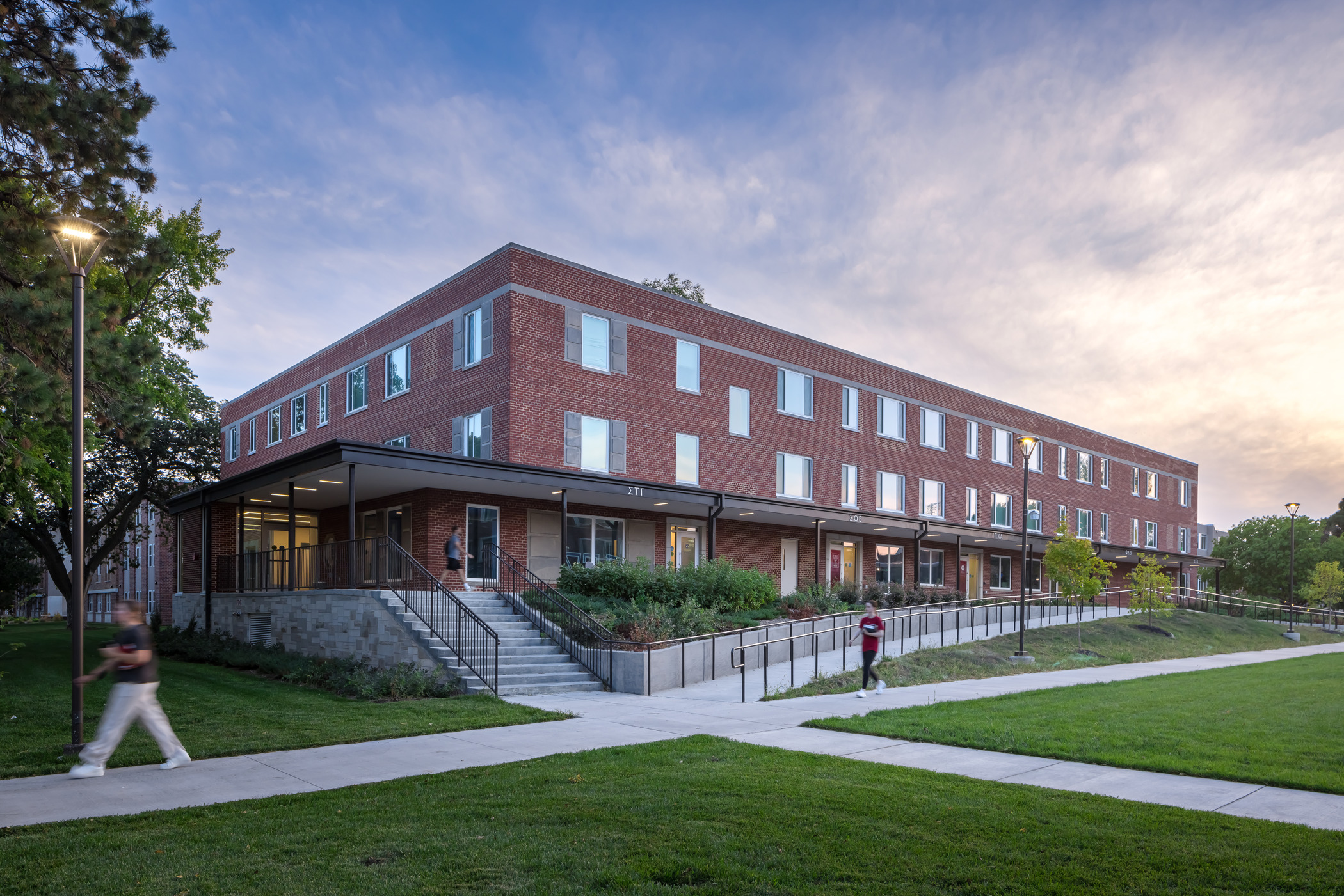 Located at the edge of campus, Martin Hall and the new 43,074 SF building will be positioned across from each other, creating a campus green with outdoor space and extending the union plaza. The facilities are designed to allow flexibility and variability in chapter sizes. Each FSL chapter will contain traditional double dorm rooms, one single unit (ADA), group restrooms, large lounge, small lounge, and study room.